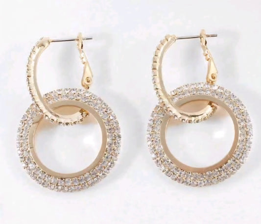 2 Looks In 1 Circle Drop Gold Plated Rhinestone Set Dangle Earrings